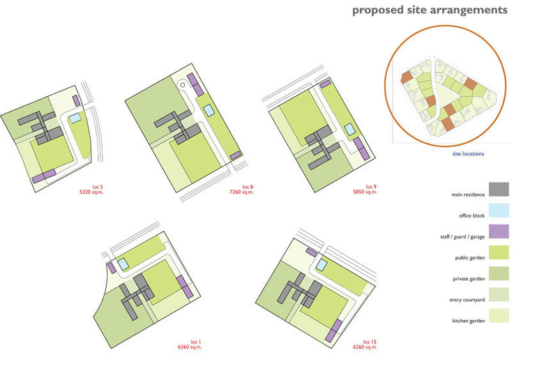 The identity and character of the residence was critical - both the significant urban location and symbolic function as accommodation for senior members of the Indian government must be embodied in the design. These residences were to serve as exemplary models of contemporary building technology and environmental engineering. The existing bungalows express an architecture that has proven completely unviable given the local climate; moreover they are cast in the image of a dated colonial architecture. The new residences should reflect an evolution in terms of architectural iconography while fulfilling the mandate of a stately residence. The integration of landscape and architecture - innovative sectional relationships between the earth, the building, the garden, and the sky – may offer a thesis for the design. The scale of the existing bungalows conforms to an approximate datum of 6 meters in elevation. However, this datum reflects a constant relationship with the ground plane. By creating a series of terraced gardens, the massing of the residence may be excavated into the earth, creating a thermal buffer for natural insulation.