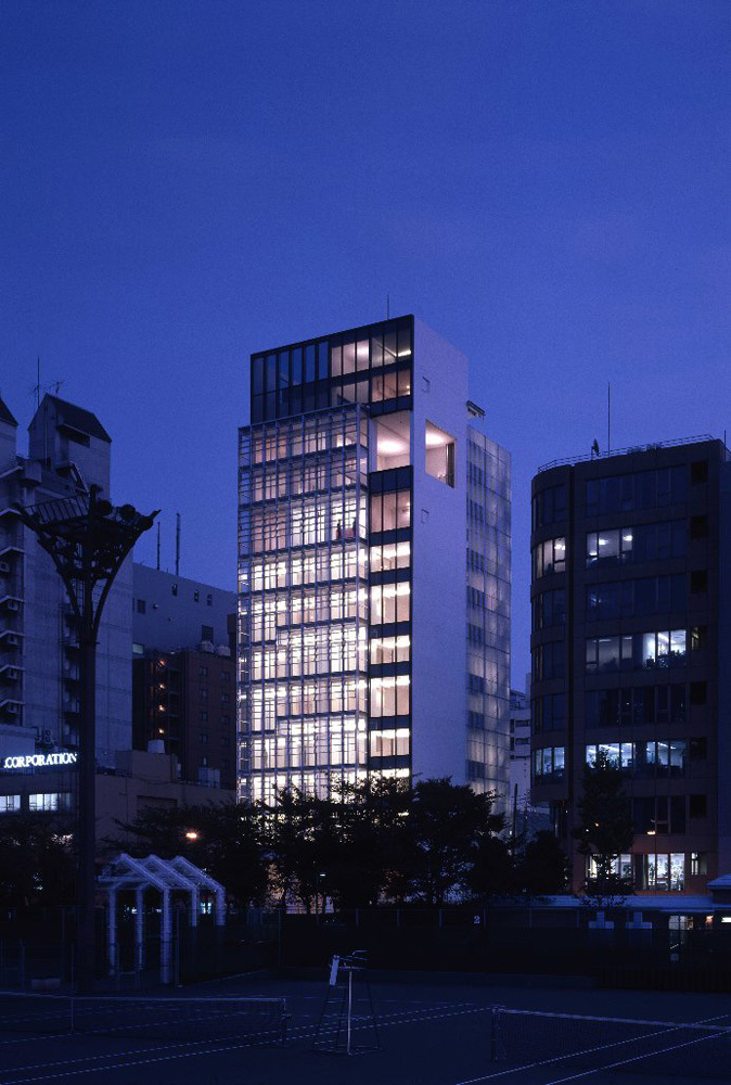 敷地は大阪の真中にあり、北側は大阪都心の貴重な自然である靱公園に面する。設計は敷地から決まる最大限のボリュームをまず確保し、その内部に法的に許される限りの床面積を挿入するところから始めた。検討の結果、高さ方向には余裕があること、それに水平方向にも外部空間を取り入れる余裕があることが判った。
