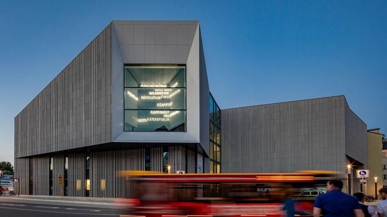 Die Fassade des Museums ist im Norden erdgeschossig nach innen gezogen, so dass der Zugang von der Donauseite besonders betont und Innen- und Außenraum miteinander verwoben werden. Für Veranstaltungen und Museumszwecke werden Flächen im Außenbereich angeboten, wodurch das Museumsumfeld belebt und in das Gesamtkonzept einbezogen werden kann.