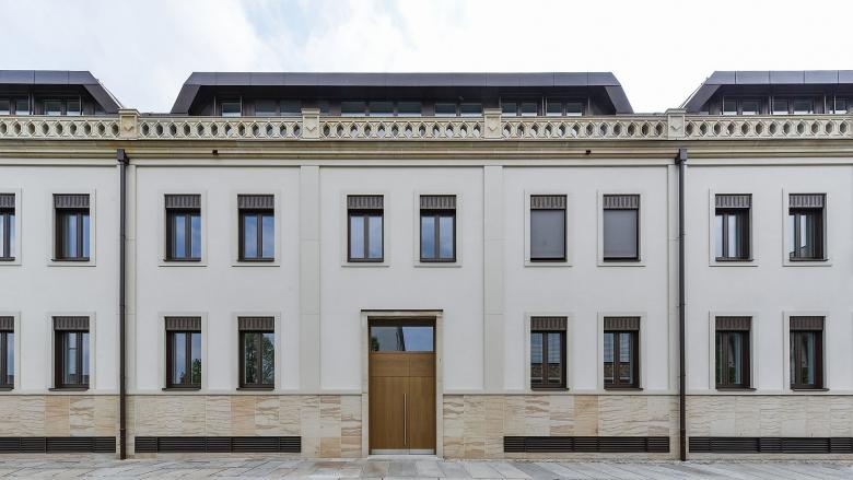 Die im Jahr 1841 im Stil der florentinischen Neorenaissance errichtete Orangerie "An der Herzogin Garten" wurde im Zweiten Weltkrieg so stark zerstört, dass nur der straßenseitige Kopfbau als Artefakt erhalten blieb. Erst im Jahr 2019 konnte der Wiederaufbau des Gebäudes als ein architektonisch und städtebaulich bedeutsamer Punkt im Dresdner Stadtbild vollendet werden. In enger Zusammenarbeit mit dem Landesamt für Denkmalpflege wurden Kopfbauten und Gartenfassade nach alten Plänen rekonstruiert. Heute sind in dem Gebäude zwölf großzügige Wohnungen und in den beiden Kopfbauten Gewerbeeinheiten untergebracht. Die besonderen Qualitäten der Innenräume sind ihr Bezug zu der weitläufigen Parkanlage und ihre Ausblicke in den Zwingerpark -tiefe Loggien und Balkone bieten die nötigen privaten Rückzugsorte. Insbesondere die eleganten bronzierten Fensterelemente zwischen den zweigeschossigen Sandsteinportalen zeugen von der Verbindung zwischen Historie und Moderne. Die Straßenseite mit den Zugängen zu den Apartments zeigt sich mit einer zurückhaltenden, hochwertigen Fassade aus Putzflächen, Sandstein- und Bossenelementen. Neben der Orangerie wurde auch „Der Herzogin Garten" nach historischem Vorbild rekonstruiert und für die Öffentlichkeit geöffnet und ist inzwischen ein attraktiver Anziehungspunkt für die Dresdner und ihre Gäste.