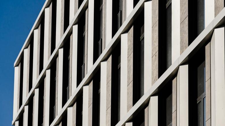 In zwei Bauabschnitten entsteht nach dem erstplatzierten Wettbewerbsentwurf ein Ersatzneubau für die ViDia-Kliniken an der Steinhäuserstraße - der erste wurde Ende 2021 fertiggestellt. Städtebaulich bettet sich der Neubau in die orthogonale Stadtstruktur des „Beiertheimer Feldes" ein. Das äußere Erscheinungsbild, eine Fassade aus wertvollen Materialien wie Naturstein und großflächigen Metallelementen, spiegelt auch den Wunsch des Bauherrn nach der Ausstrahlung von Kompetenz und Beständigkeit wider. Über einen Vorplatz mit Bäumen und Bänken gelangt man in eine zweigeschossige, lichtdurchflutete Eingangshalle. Das barrierefreie Ankommen und Aufhalten im gesamten Haus ist selbstverständlich.