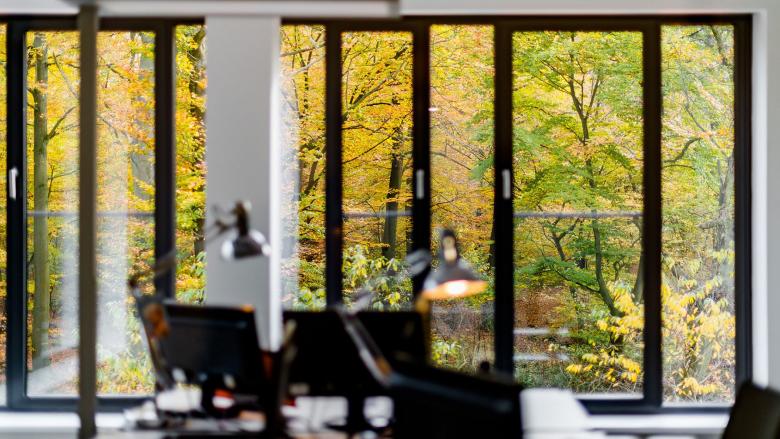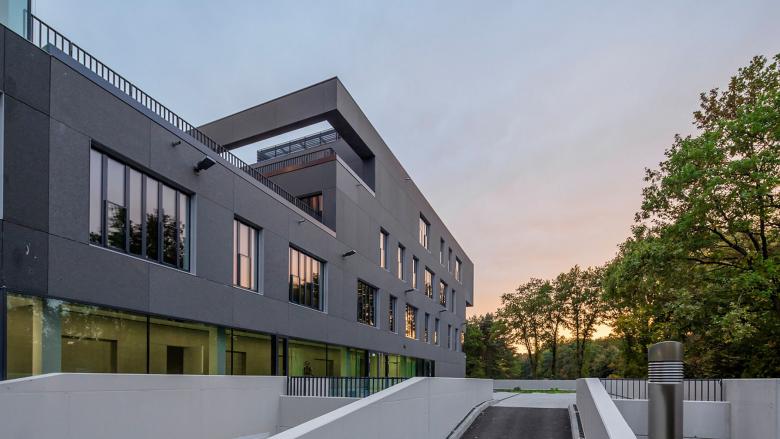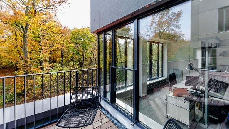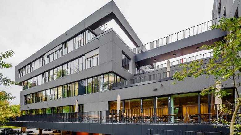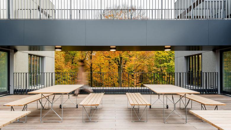 Neben den eigentlichen Büroflächen bietet das neue Haus Tiefgaragenplätze, Besprechungszonen, Denkboxen, Steharbeitsplätze, Café-Ecken, Lounges, Freilufträume, einen kreativen Entwicklungsbereich und auf allen Arbeitsebenen übers Jahr eine Baumkulisse in saisonalen Farben zum Anfassen.