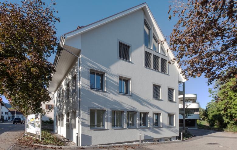 Die Überbauung «Oase» im Dorfkern von Frick, besteht aus einem neuen Mehrfamilienhaus und einem historischen Gebäude, das umfassend erneuert wurde. Durch die vordachlosen Dachaufbauten und schlanken Dachabschlüsse kommt das Haus nun etwas moderner daher. Neu verfügt es über gedeckte Terrassen, die auf der Westseite angebracht wurden.