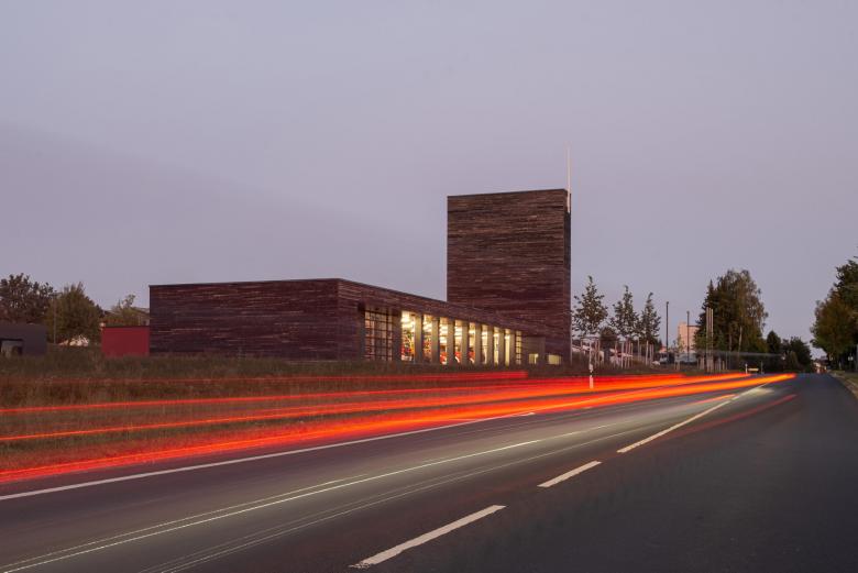 Nicht nur das neue Gebäude prägt architektonisch markant den Stadteingang, sondern die Feuerwehr die ganze Stadt. Es schafft städtebaulichen Mehrwert, stiftet Identität mit der Stadt, der Feuerwehr und ihrer Schutzfunktion – lässt die Einsatzbereitschaft spüren. Die Tirschenreuther Feuerwehr ist eine große, engagierte freiwillige Feuerwehr mit einer lebendigen Jugend. Feuerwehr und Stadt haben mit guten Ideen das neue Gebäude mitentwickelt und unsere architektonische Idee von Anfang an begeistert mitgetragen. Es gab zahllose intensive Gespräche über die Arbeit der Feuerwehr, Funktionen, Abläufe, Grundrisse, Raum, Material und Licht. Ort, Architektur und Funktion symbiotisch verbunden, geben die Antwort. Heute begrüßt das neue Feuerwehrgerätehaus mit seinem Übungsturm mit besonderer Geste bei Tag und illuminiert bei Nacht die Tirschenreuther und ihre Gäste. Durch die großen, gläsernen Tore sieht man die Einsatzfahrzeuge schon von weitem, sie vermitteln Sicherheit, sind stets einsatzbereit.