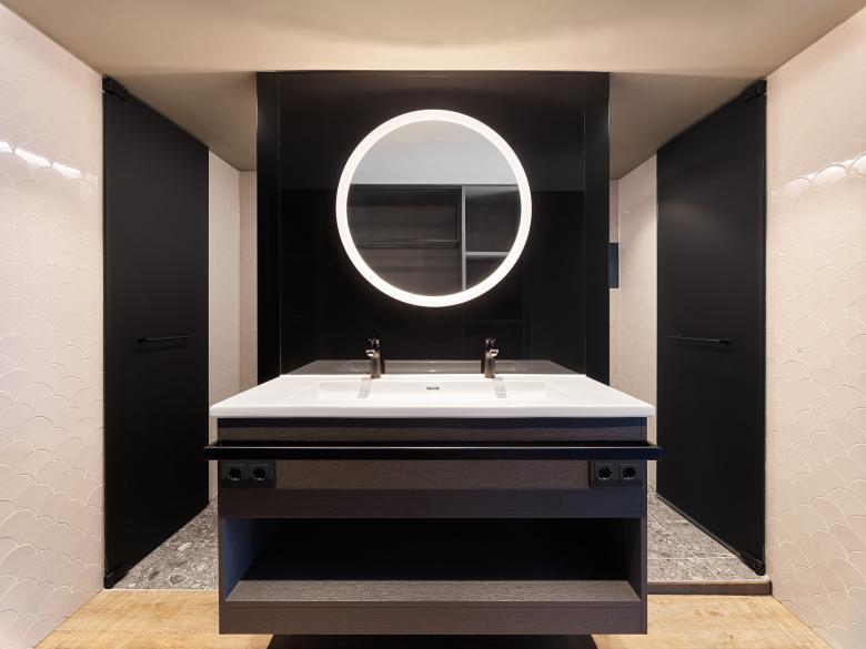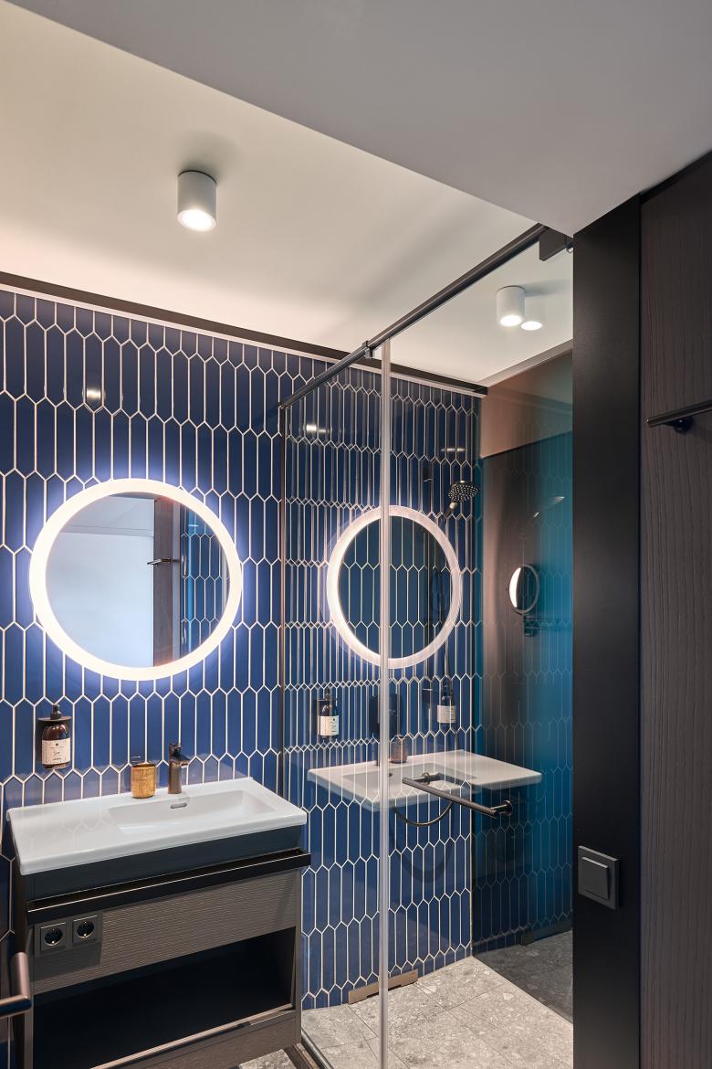 Mit Materialien mit schmeichelnder Haptik, griff das Innenarchitektur-Team das Thema der Gastfreundschaft auf und übersetzte dies außerdem mit dekorativen Details. Über der Empfangstheke begrüßt der Schriftzug „Wo Gäste Freunde sind“ die Ankömmlinge. Über die Lobby gelangen die Gäste entweder zu den insgesamt 86 Zimmern oder in das, in der Verlängerung leicht abgestufte Restaurant.