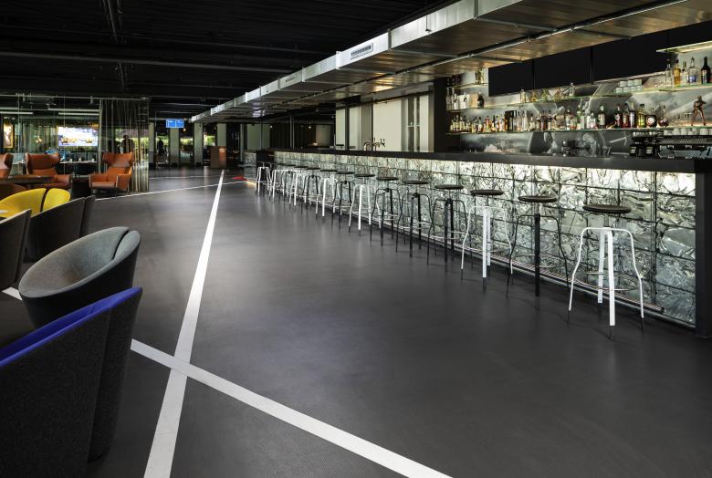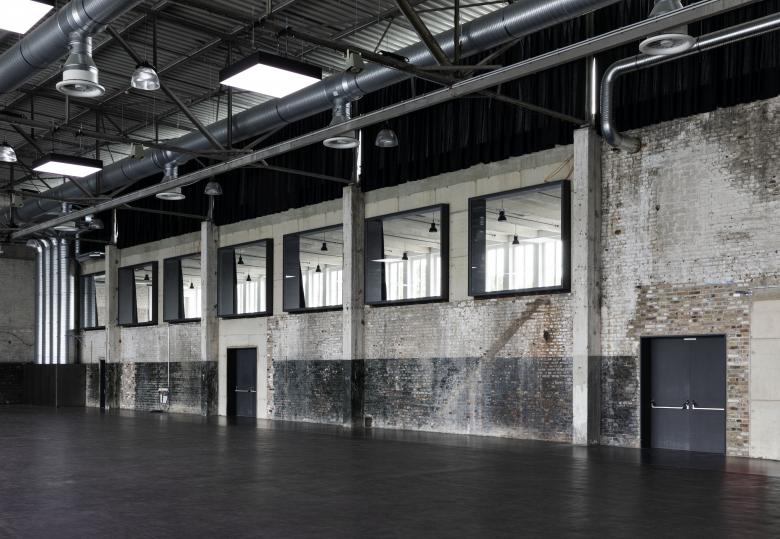 Im Inneren wurden die Hangars mit aller vorhandenen Patina der letzen 80 Jahre im Orginalzustand erhalten. Der Eventhangar wurde für 4000 Personen in der Maximalbelegung ausgelegt. Modernste Technik steht im Kontrast zu den im Originalzustand belassenen Stahltragwerk und den Backsteinwänden. Stählerne Kuben wurden durch die Bestandswände geschoben um einen VIP-Bereich im 1.OG von der Halle abzutrennen und gleichzeitig eine entsprechende Transparenz zu schaffen.