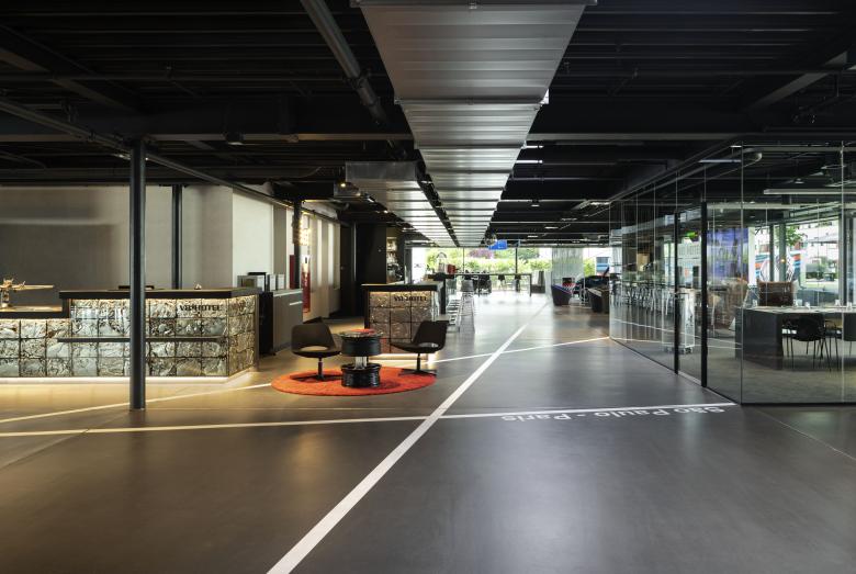Im Werkstatthangar wurde eine neue Ebene eingeführt um den gläsernen Werkstätten einen entsprechenden Raum einräumen zu können. Auf dieser Ebene findet sich die Michael Schumacher Privat Collection die über zwei offene Treppen in einem Rundgang erlebt werden kann.
