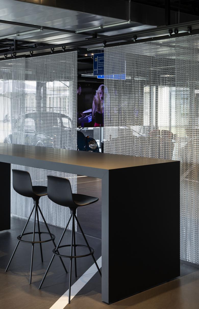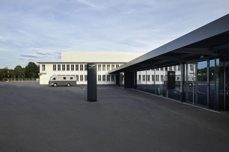 Die stählernen Hangartore wurden sorgsam in den dafür vorgesehenen Parktaschen untergebracht und die dem Flugfeld zugewandten Fassaden als filigrane Gasfassaden mit der selben Teilung der Bestandtore nachgebildet. Damit öffnen die Hangars sich und nehmen in einem Baukörper gläserne Einstellboxen auf in denen ausgewählte Kundenfahrzeuge auf drei Etagen aufbewahrt und ausgestellt werden können.