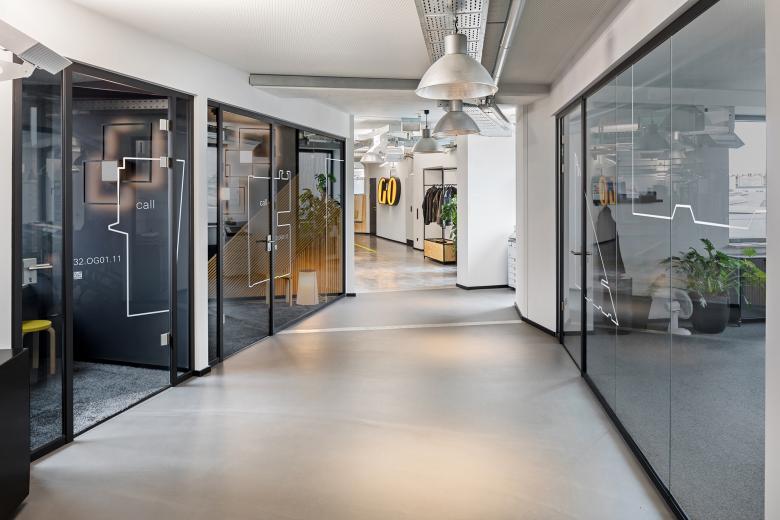 Office Design mit FunktionDas Schüco Digital Hub ist ein modernes, nachhaltig saniertes Bürogebäude, das New Work Prinzipien integriert.
