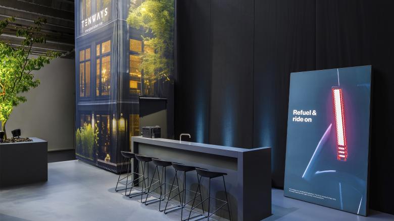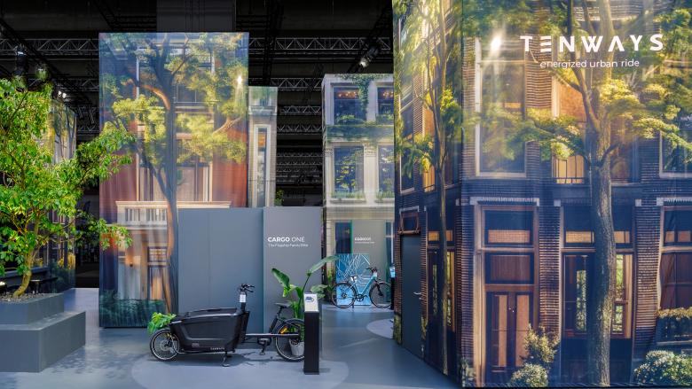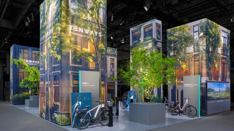 Mitten in einer fiktiven Stadt präsentiert sich der internationale E-Bike Hersteller TENWAYS auf der Eurobike in Frankfurt. Unter der Devise „Energized Urban Ride“ setzt die 2021 gegründete Marke auf Stil und Performance und zeigt sich dabei erfrischend jung, ökologisch und mit einem ausgeprägten Bewusstsein für Kommunikation im Raum.