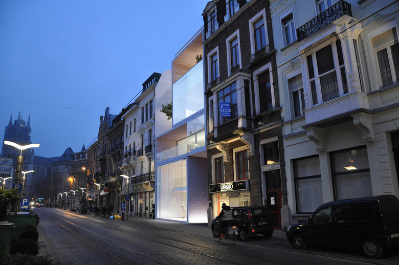 Located in the heart of medieval Ghent city, a heartless 70’ building dislocates a 19th century street. The brief: integrating 4 luxury apartments and an exclusive store + restoring the balance in an rare historic context.