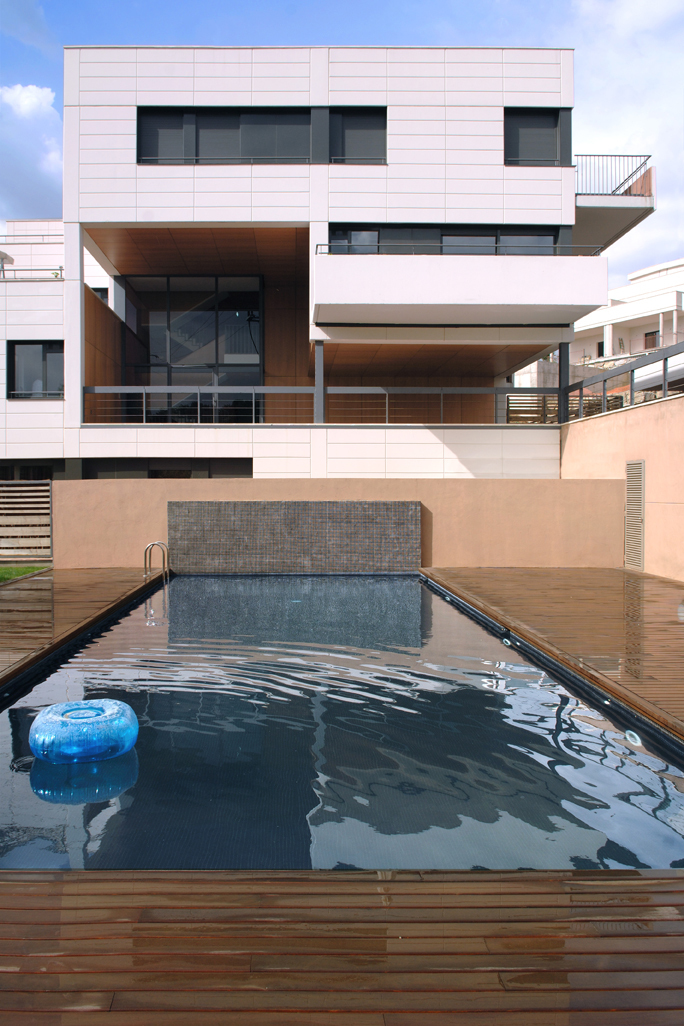 L’espai comunitari s’estructura en esplanades de diferent dimensió, caràcter i funció –piscina, jocs de nens, jardí...–, situades a diferents nivells i comunicades per recorreguts complexos.