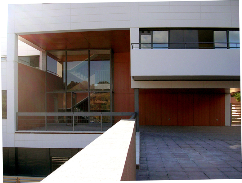 Les façanes es van projectar a partir del traçat modular de la planta, amb peces prefabricades de formigó arquitectònic que resolen paraments verticals, caixes de persiana i revestiments de pilars. Les mides dels buits s’ajusten als requeriments funcionals de cada dependència, si bé s’agrupen en finestres horitzontals de major dimensió per obtenir una aparença general lleugera i endreçada de les façanes.
