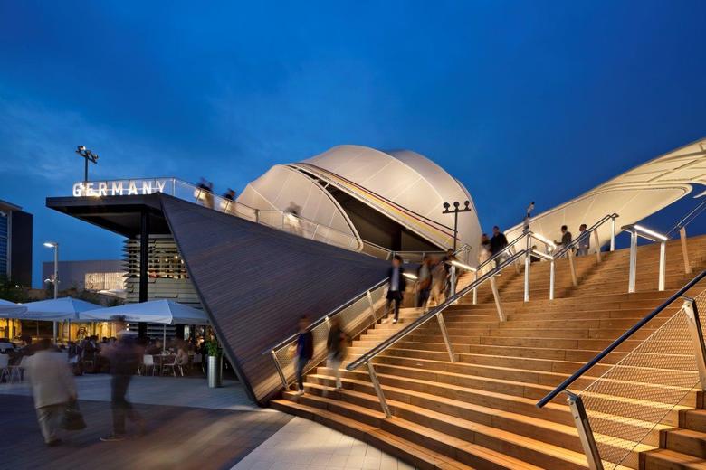 Germany’s pavilion, seen from the main route through the Expo, isn’t especially impressive. Indeed, it looks something like a boardwalk on which several tents have...