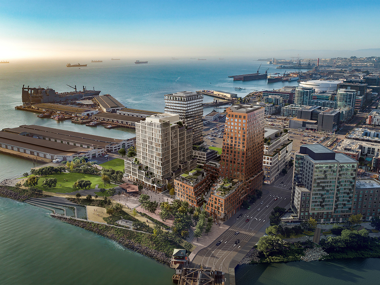A 28-acre parking lot is being transformed by Tishman Speyer and the San Francisco Giants into Mission Rock, a mixed-use neighborhood across the water from the Giants' Oracle Park. Phase 1 features buildings designed by Henning Larsen, MVRDV, Studio Gang, and WORKac.