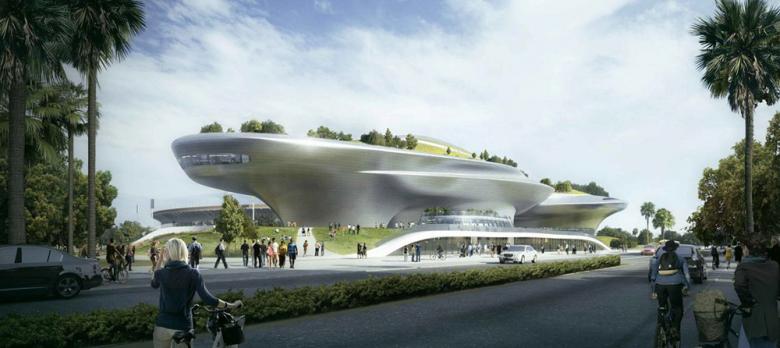 Documents filed with the Los Angeles Department of City Planning for the new Lucas Museum of Narrative Art in LA's Exposition Park include updated renderings by architect Ma Yansong of MAD Architects.