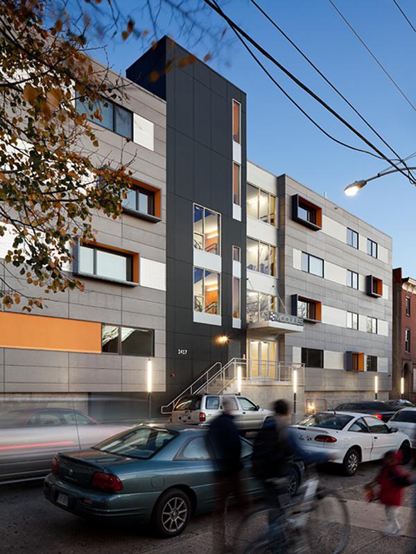 This five-story building features 72 student apartments serving Temple University. Built of 80 prefabricated boxes, the project is an example of off-site construction typically used for single-family houses being realized on a much larger scale. Philadelphia’s Interface Studio...