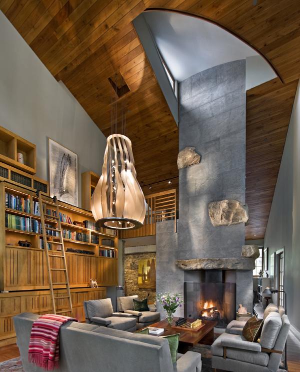 A radiating plan that reaches towards the water defines this house designed by Connecticut-based Centerbrook Architects and Planners. Further an embedding of natural features (rocks, logs) gives the project its distinctive blend of modernism and nature. The architects answered some questions...