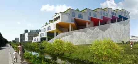 The Mountain Dwellings are the second generation of the VM Houses. The program is 2/3 parking and 1/3 living. Rather than doing two separate buildings, we decided to merge parking and housing into a symbiotic relationship. All apartments have roof gardens facing the sun, amazing views, and...