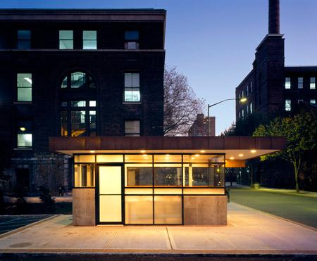 New York City-based Hangar Design Group answered some questions about their design of a small Security Kiosk on the northern edge of the Pratt Institute's campus. It is a small but important element in the school's northward expansion.