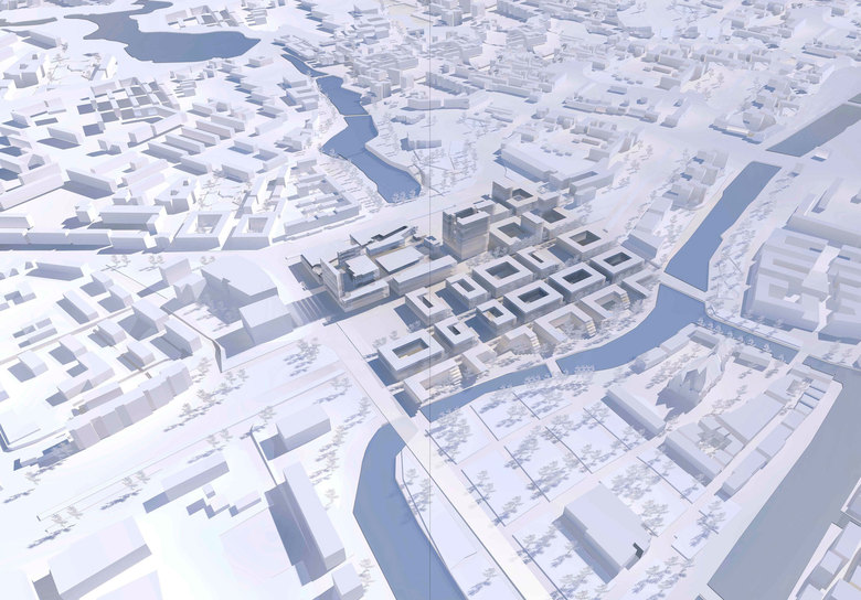 BASIS – The most important connecting elements of the historic city of Königsberg and modern Kaliningrad are landscape and topography. Not only historic buildings and neighborhoods or new traffic highways, created after the second world war, but also the location on the river Pregel, the course of the river through the city and the seaside location characterize the special situation of the city. The restoration of the course of the natural terrain was therefore a top priority to design. Others like economic, functional and formal aspects are subordinate or arising logically. Frankly formulated: Not the change and adaptations of today's traffic, the new functional mixture, the formation of a cultural center in the "Heart of the City" are the key components of the idea, the idea results from the topography. The design goals are: A high degree of urban density in the northern area with attractive cultural, commercial facilities, hotels and service areas and a high quality of living in the south of the competition area - but also the unbundling of transport and an attractive network of pedestrian pathways. The restoration of the course of the historic, respectively natural terrain also contributes significantly to eliminate the distinct break between "Altstadt" and the "Königsberg". This means a better connection of neighborhoods and a better mixture of inner-city and residential functions. A compact urban area with a unified appearance is made possible.