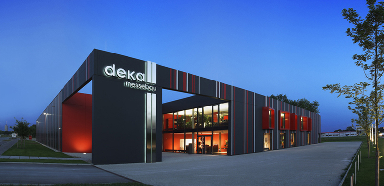 Gewerbebauten wie Messestände bestehen gegenüber der heterogenen Unverbindlichkeit ihrer gebauten Umgebung durch einen leicht verständlichen gestalterischen Ausdruck. Maximale Präsenz und Signifikanz, bei gleichzeitigem Einsatz einfachster Mittel, ohne jedoch dabei laut oder gar beliebig zu werden.Ein Code aus farbigen Streifen verbindet unterschiedliche Nutzungsbereiche und Fassadenkonstruktionen zu einem homogenen Erscheinungsbild. Ein offenes Atrium vor dem Eingang schließt die Fluchten zum kompakten Baukörper.Im Zentrum der Verwaltung transparente Arbeitsbereiche und offene Kommunikationsflächen.