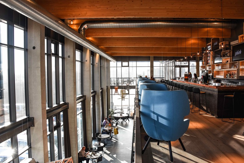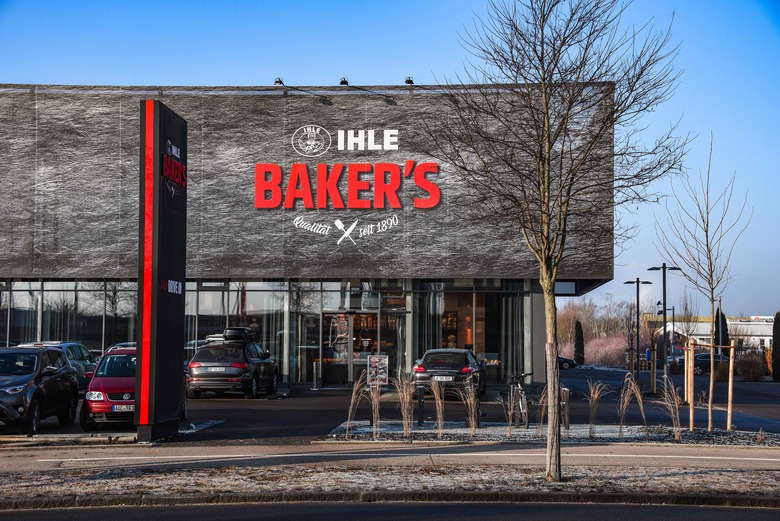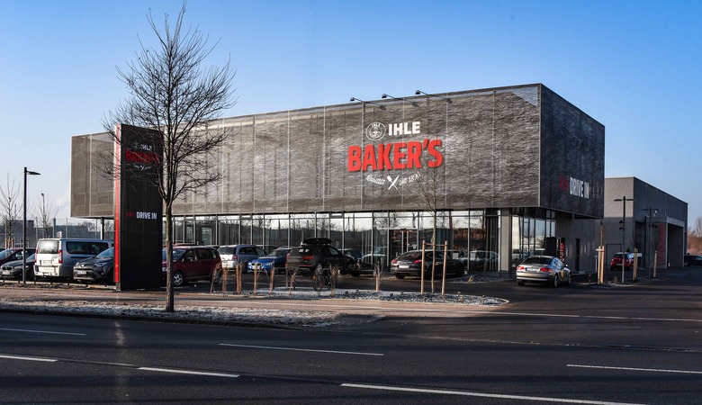 Mit moderner Architektur und stylischem Interieur setzt die Großbäckerei Ihle einen neuen Akzent unter den Augsburger Bäckerei – Cafes. Ein vollverglaster Baukörper bietet auf zwei Geschossen Platz für über 300 Gäste. Verkaufstheke und Cafebestuhlung im EG, Bar und Lounge auf der Galerie im Obergeschoss. Ein bedruckter Fassadenscreen ist großflächige CI – Fläche von Außen, blickdurchlässig von Innen und verwandelt sich nach Sonnenuntergang in einen illuminierten Leuchtenschirm.