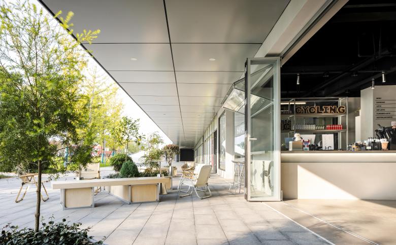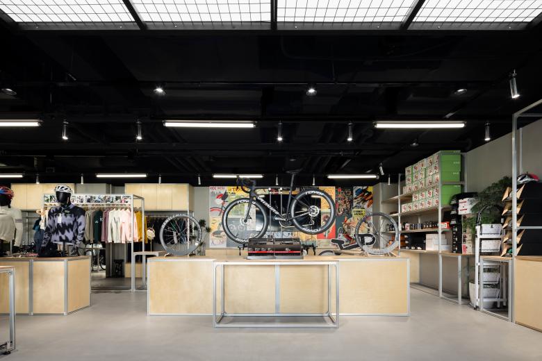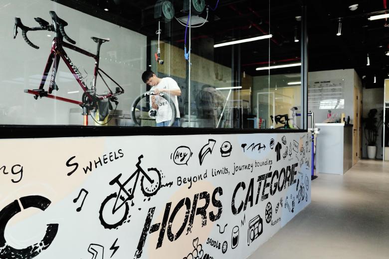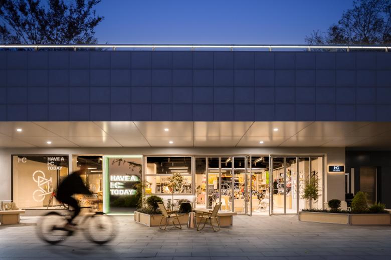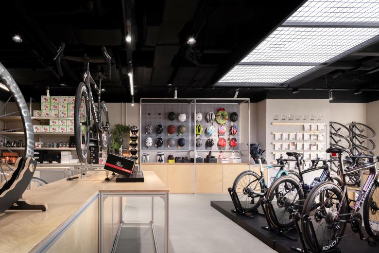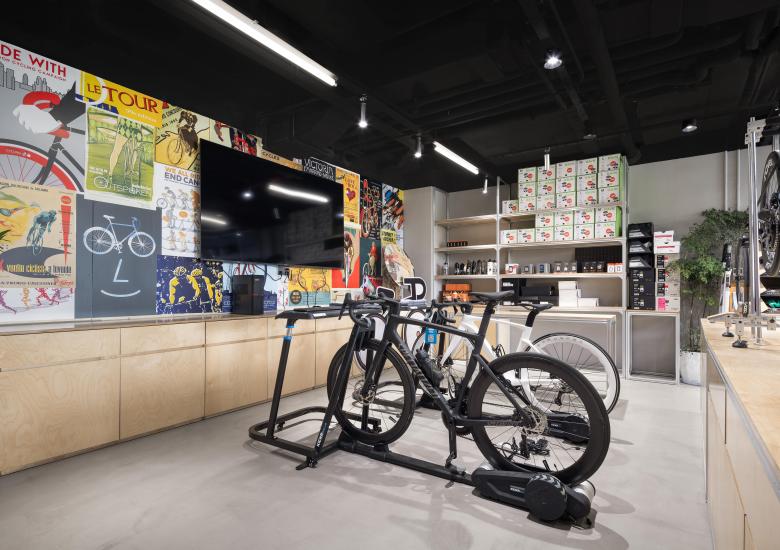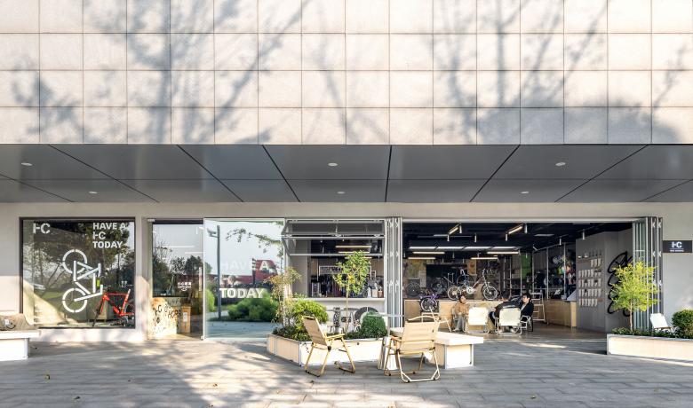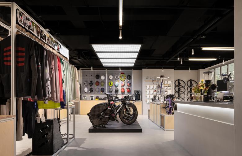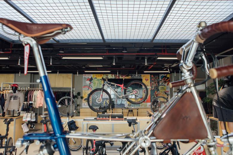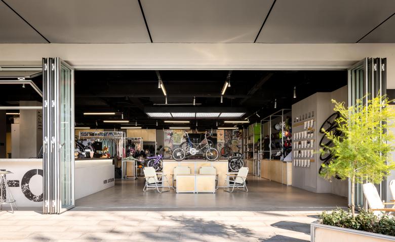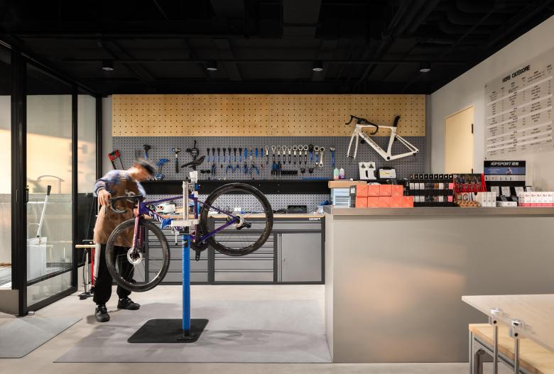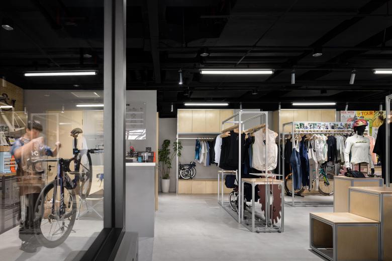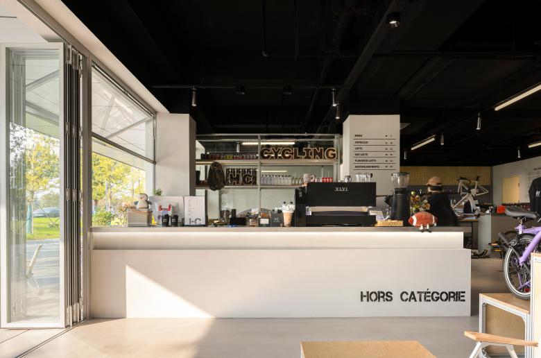 空间共分两大主要区域,一侧主要为自行车维护空间,另一侧则是顾客休息空间,兼具咖啡吧台。泾渭分明的空间特质以按照时序排列的方式满足目标客户的需求:人与车都应获得休息。