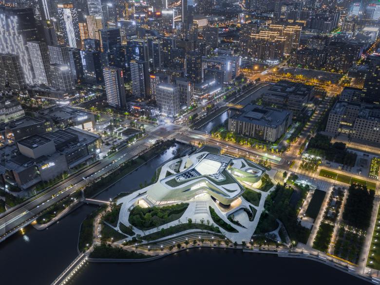 Shortly after the successful collaboration for the German Pavilion at the Expo 2010 in Shanghai, the two practices playze and Schmidhuber joined forces again to win the invited competition for the Ningbo Urban Planning Exhibition Center. Eight years later the construction has been completed and the center opened to the public. It is located at the heart of the newly built “Ningbo Eastern New Town” adjacent to the city hall and the civic square.