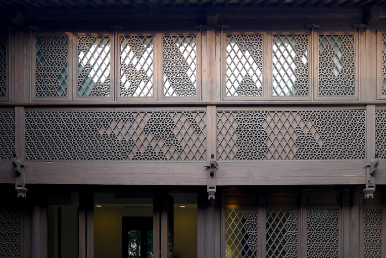 The wood construction has been rebuilt in major parts including local tectonic knowhow. The inner facade of the courtcard is the result of a computer aided reinterpretation of chinese ornaments. The design is computer driven - the realisation is traditional craft.