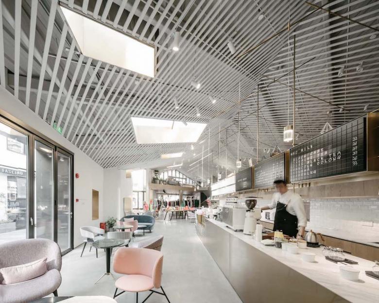 This urban renewal project is located in Shanghai, Changning district. A shut down chemical factory has been converted into a lively urban neighbourhood. Restaurants, coffee shops, bars and local brand shops on the ground floor invite the surrounding communities. Upper floors offer all kinds of different office concepts for small and medium companies.