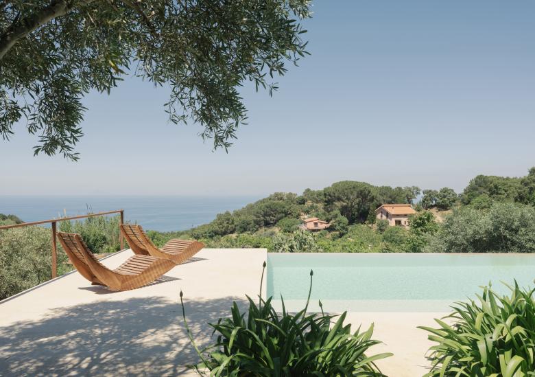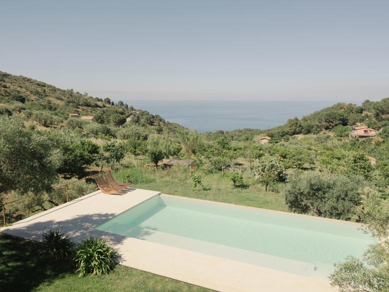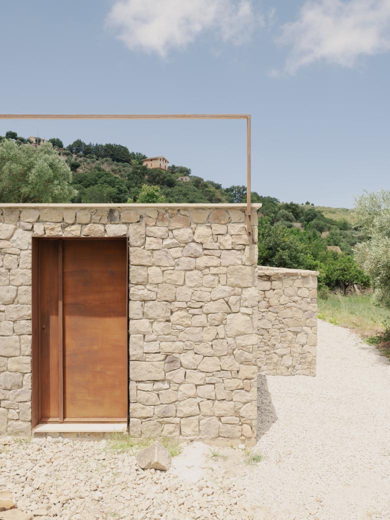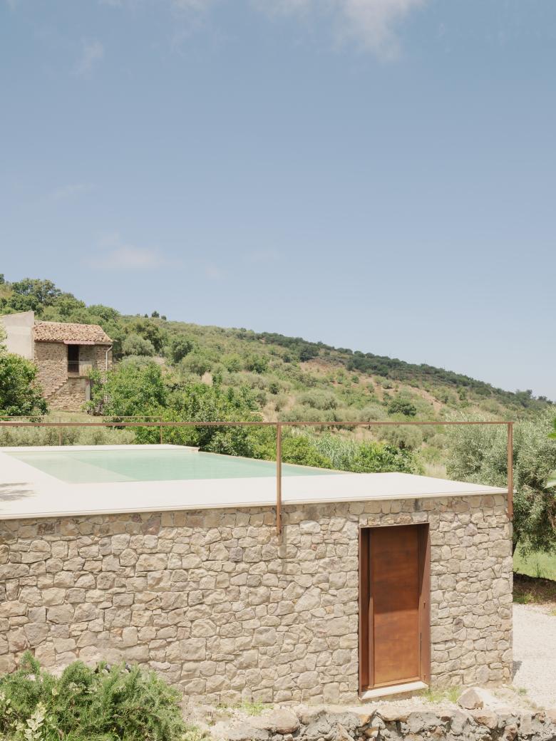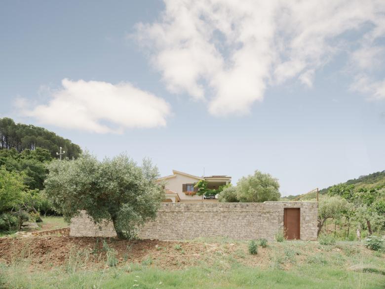 Il progetto riconfigura lo spazio esterno di una residenza immersa nel paesaggio del Parco delle Madonie.