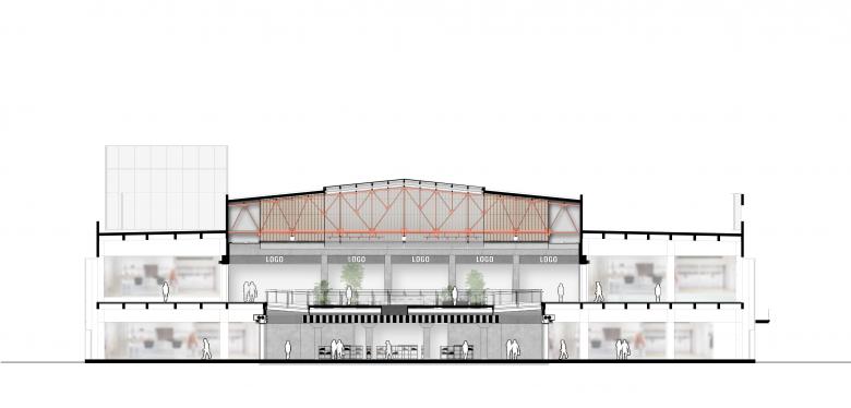 The layout of the 3 preserved factory buildings is relatively dispersed, with a gap of up to 60m between Factories A and B. Additionally, the cleared surroundings resulted in empty spaces that challenge the pedestrian experience. Kokaistudios’ primary task was to reinterpret the massive industrial heritage, in a way that not only improves walkability and circulation but also maintains coherence and integrity across the site.