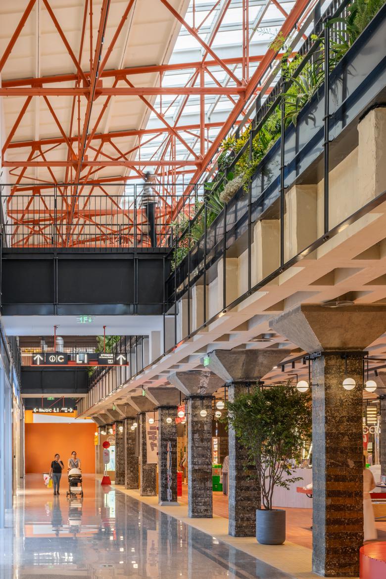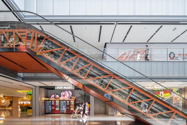 Kokaistudios innovatively retained the core section of this feature and introduced a circular corridor around the main structure, connecting it to the core section. As a result, the ventilation floor is transformed into a captivating visual island, serving as a versatile stage for exhibitions and fashion shows, adding value to the commercial space below.