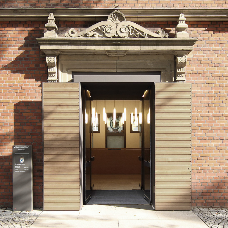 Herzog Albrecht von Sachsen-Gotha-Altenburg ließ zwischen 1685 und 1690 in exponierter Lage gegenüber der Ostseite des Schlosses Ehrenburg „einen sehr langen Marstall und daran stossendes Reit- und Kutschen-Haus“ erbauen und diese „aussen mit Stein verkleiden“. Aus dieser Zeit stammen die ältesten Gebäudeteile dieses Baudenkmals, das heute die Coburger Außenstelle des Bayerischen Landesvermessungsamtes München beherbergt. Ursprünglich waren die Gebäude zweigeschossig und hatten ein mit altdeutschem Schiefer gedecktes Mansardendach. Die Rückfront war auf Teilen der äußeren Stadtmauer errichtet worden, was die leichte Krümmung des Grundrisses erklärt. Die Außenmauern bestanden aus mit Steinen verkleidetem, ausgemauertem Fachwerk. Das heutige Erscheinungsbild mit reicher architektonischer Neurenaissancegliederung an den Giebeln entstand Ende des 19. Jahrhunderts unter dem Architekten Julius Hartmann. Letzte Eingriffe in die historische Struktur des Marstalles wurden zwischen 1921 und 1923 getätigt als im Mitteltrakt Wohnun-gen mit Kellerräumen geschaffen wurden und das Mittelportal geschlossen wurde. Seither erfuhr das Ensemble mehrere Umnutzungen, wesentliche die Substanz verändernde Maßnahmen wurden nicht durchgeführt. Im Zuge der Sanierung wurde der Haupteingang in den Mittelrisalit des Gebäudes zurückverlegt, wo er zu herzoglichen Zeiten bereits angeordnet war und in die Stallungen führte. So wurde eine städtebauliche Verknüpfung mit dem Schlossplatzensemble geschaffen, die der historischen Bedeutung der Marstalles gerecht wird, und die erdgeschossigen Gußeisenstützkonstruktionen mit Kappendecken wieder als räumlich erlebbares Geschenk der Geschichte zugänglich gemacht. Wertvolle architektonische Bauteile wurden wieder entdeckt und in das Gesamtkonzept integriert. Die nachträglich unter funktionalen Gesichtspunkten eingefügte Kellersituation mit ihren problematischen Höhendifferenzen wurde bereinigt. So konnte eine Gebäudestruktur geschaffen werden, die über eine Mittelerschließung kurze Wege und klare Orientierung bietet. Auch die Materialität entwickelte sich aus der Historie: Ziegel, Eisen, Putz, Holz und Glas bilden die Basis des reduzierten Konzeptes. Die Sanierungsmaßnahme bot die großartige Möglichkeit, das überformte Marstallgebäude aus funktionalen, konstruktiven, energetischen und architektonischen Zwängen zu befreien und in enger Abstimmung mit dem Bauherrn und dem Landesamt für Denkmalpflege eine auf historischer Grundlage fußende zukunftsweisende Architektur für ein modernes Vermessungsamt zu ermöglichen. Die Planungen von Brückner & Brückner Architekten berücksichtigten die historisch gewachsenen Strukturen und fügten das Raumprogramm sensibel in den Bestand ein. Den Mitarbeitern des Vermessungsamtes und den Bürgern der Stadt Coburg wurde ein Stück erlebbarer Geschichte zurückgegeben und dem Gebäude Atmosphäre und Charakter.