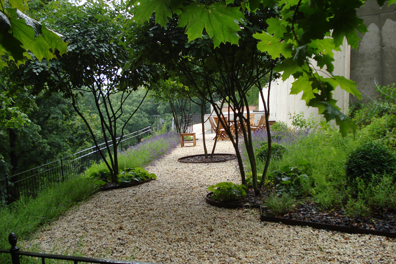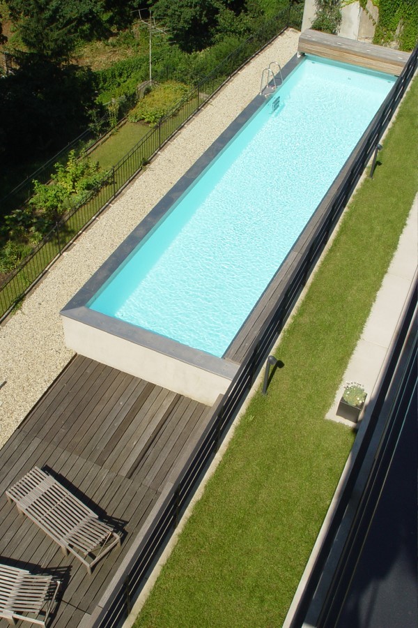 Das 2.800 m² große Grundstück befindet sich circa 11 km östlich des Dresdner Stadtzentrums unmittelbar an den Elbhängen und entwickelt sich über 30 Höhenmeter hinab in das Dresdner Elbtal. Die Zusammenführung gezähmter und ungezähmter Natur, sowie die Verknüpfung bestehender, historischer Elemente mit modernen, schlichten Implantaten standen bei dem Entwurf am Steilhang im Vordergrund. Die mit unterschiedlich Funktionen versehenen, sich in den Hang schiebenden Terrassenplateaus, sind durch Treppenanlagen miteinander verbunden und fügen sich in schlichter Eleganz zu einer modernen Gartenanlage.