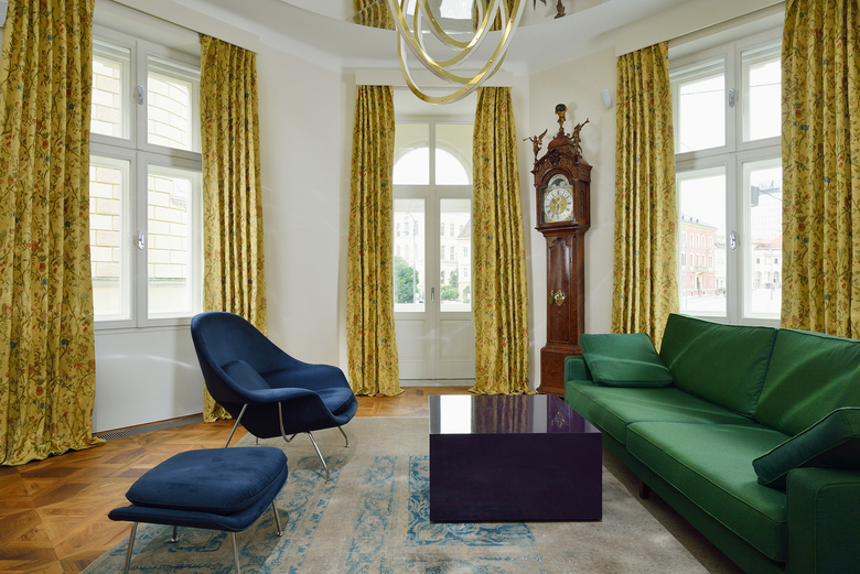 Apartment in the 19th century townhouse in Ljubljana is a place of opposites: it is both warm and cold, both soft and orthagonal. It is equally open and closed against its surroundings and both in contact and in conflict with it's past. It is an interpolation of two different but visually connected ambients with contrasting identities and materialities: the loft and the salon.