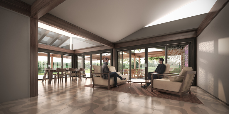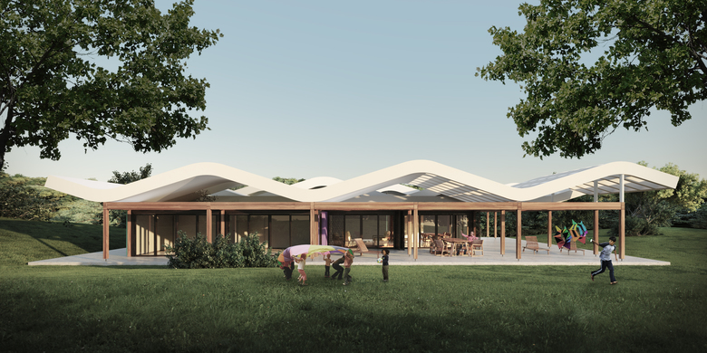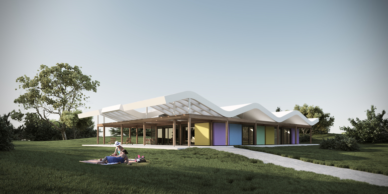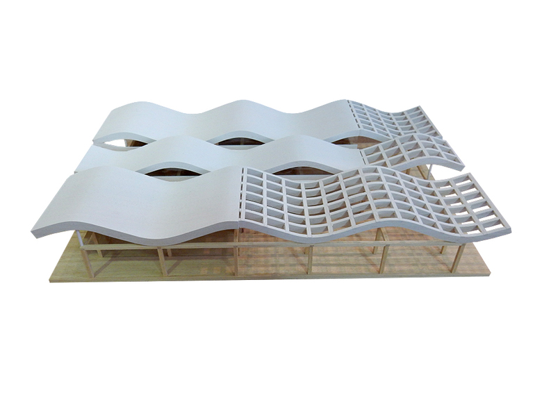 The stripes of the roof are shifted in such a way that openings are generated in between, enabling natural illumination and ventilation of the interior. The wavy roof contributes to the energy efficiency of the proposed house design.