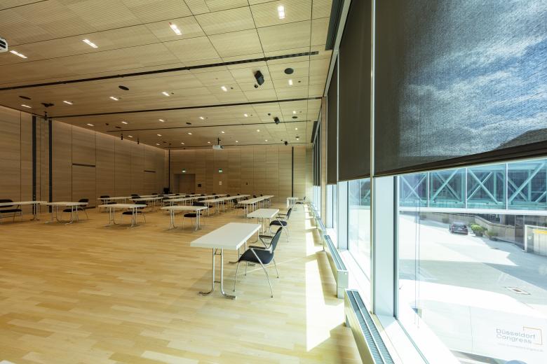 LEICHTE SONNENSCHUTZSCREENS MIT HOHEM BRANDSCHUTZ FÜR DIE NEUE MESSE DÜSSELDORF