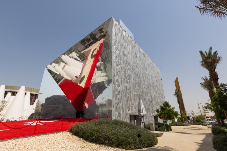 Mit einer coronabedingten Verspätung von einem Jahr startete am 1. Oktober mit der Expo 2020 die erste Weltausstellung im arabischen Raum. Über 190 Länder haben die Veranstalter auf das Ausstellungsgelände in der Wüste gelockt, darunter auch die Schweiz, die sich mit einem ausdrucksstarken Pavillon präsentiert. Hierbei werden die Besucher über einen opulenten roten Teppich geführt, der sich zu einem kubistischen Bild in einer verspiegelten Fassade zusammenfügt. Zum EXPO-Thema „Connecting Minds, Creating the Future“ zeigt sich die Schweiz zum einen als Land spektakulärer Naturerlebnisse, zum anderen als Innovations-Hotspot, was sich in der Präsentation ausgewählter Projekte und Produkte von Schweizer Hochschulen, Start-ups und innovativen Unternehmen wie z.B. Serge Ferrari aus Eglisau widerspiegelt.