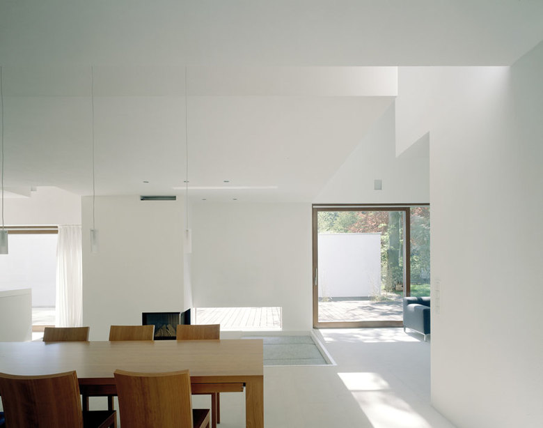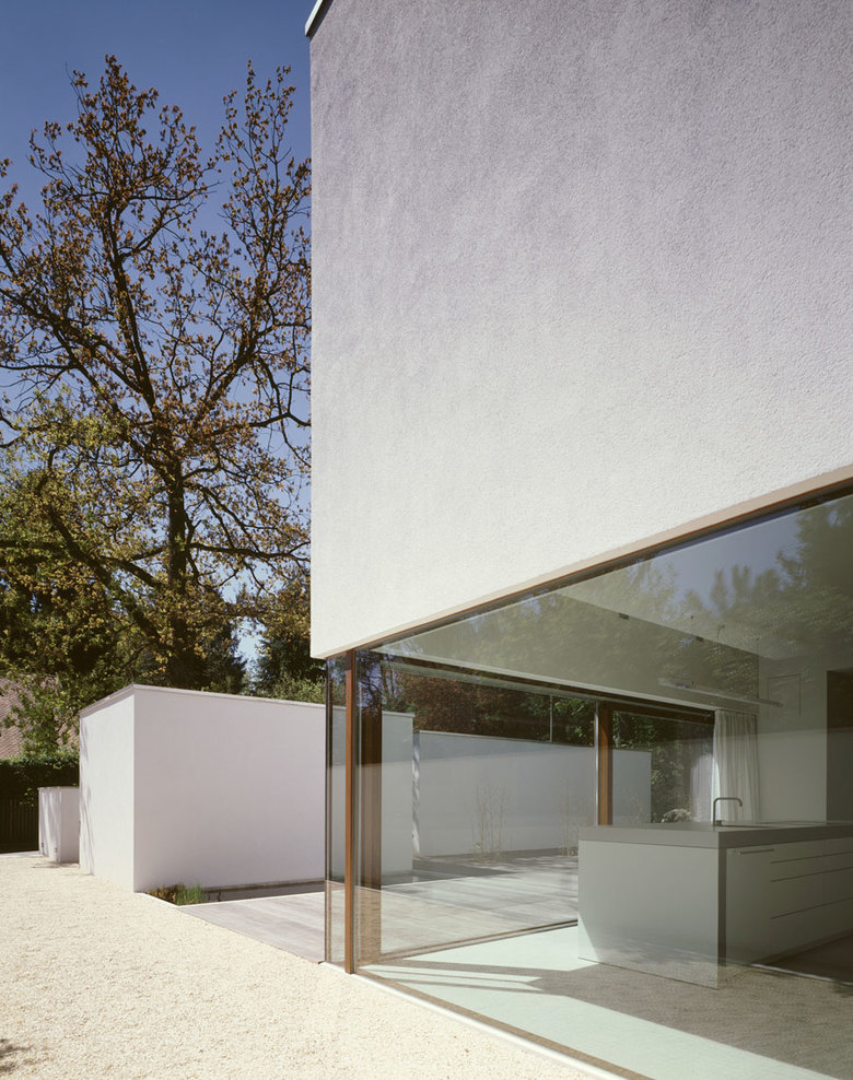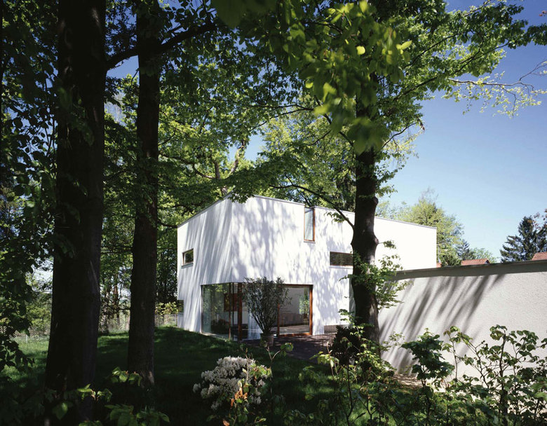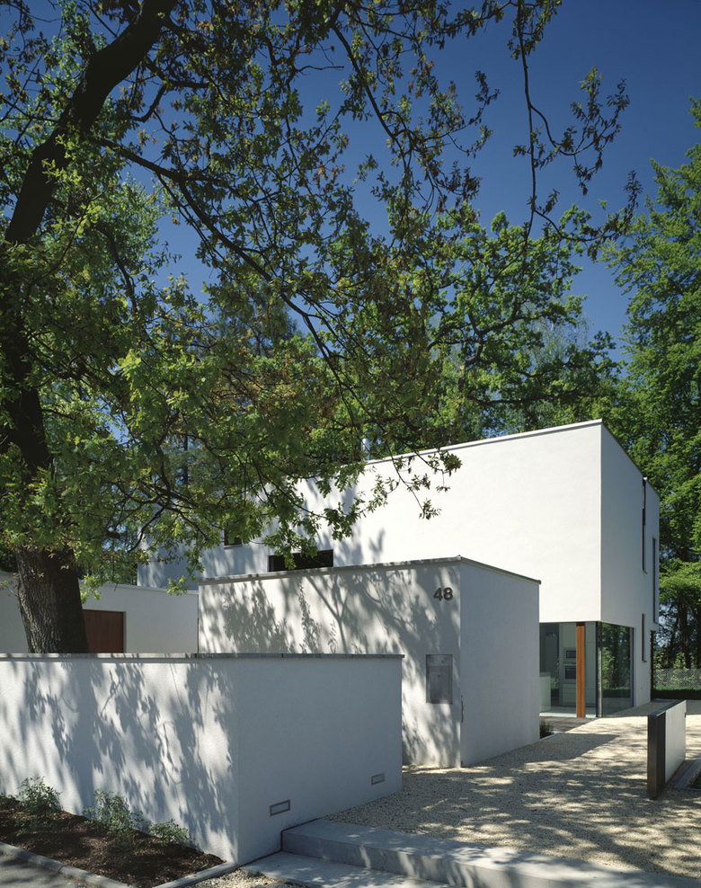 Der hell verputzte Kubus ist durch Lichtbänder und Schlitze gegliedert, er wird zur bewohnten Skulptur. Im Rahmen eines künstlerischen Wettbewerbs sollen die vier Fassaden mit temporären Lichtprojektionen über so genannte Gobos bespielt und die Thematik des ehemals als Wald erlebbaren Grundstücks als künstlerischer Transfer in Erinnerung gerufen werden. Damit wird das Gebäude im Jahr 2006 zur Camouflage.