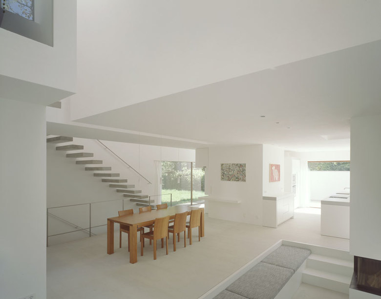 Es ist das vorläufig letzte Haus in einer Reihe kubischer Wohnhäuser, die von 1996 bis 2002 entstanden. Das Grundstück war bis zum Baubeginn dicht bewaldet. Die Aufforstung geht auf die 60er Jahre zurück und nahm keine Rücksicht auf die notwendigen Pflanzabstände, die für eine artgerechte Entwicklung der Buchen, Eichen, Fichten, und Birken notwendig gewesen wäre. Somit konnten zahlreiche kranke und kaputte Bäume entfernt und ein geeignetes Baufeld präpariert werden.