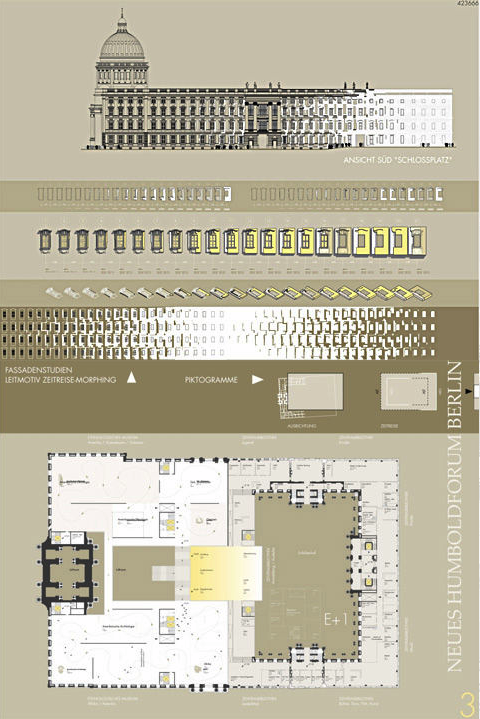 Wenn sich im Geiste der Brüder von Humboldt die Weltneugier von hier aus auf das Fremde und Andere mit seinen herausragenden Wissens- und Kunstschätzen richtet, scheint uns das Konzept einer Zeitreise vom Barock in die Neuzeit mit der Intention, die historische städtebauliche Ordnung als ein hervorragendes Zitat aus der Vergangenheit zu interpretieren und, quasi als didaktisches Angebot, über die Morphologie hin zu einer reduzierten zeitgemäßen Architektur zu führen, ein adäquater Ansatz. Nur im Komplementären, im „Sichtbarmachen der Veränderung“wird dieser Gedanke für Millionen Bürger und Besucher dieses Ortes nachvollziehbar.