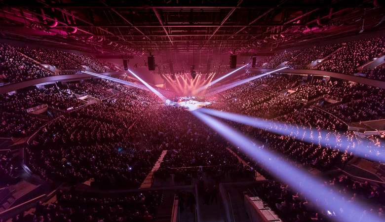 As concerts will make up a large proportion of events at the Royal Arena, the end stage configuration is very important. The Arena is also extremely flexible. It allows for a comprehensive range of staging options with a 22 meter height surrounding the stage. In addition, the symmetrical block layout, allows seating to be built up, reduced, expanded or sectioned off in the most appropriate ways for each concert, but also highly capable of adapting to quick operational changes and requirements based on ticket sales. The building has an open ground floor and a public plateau at the first floor level. Most of the spectators are seated on three sides of the stage/track/court, with the option to accommodate further visitors on the fourth side for sporting events and special cultural events. In concert-mode, the arena floor can be retracted.
