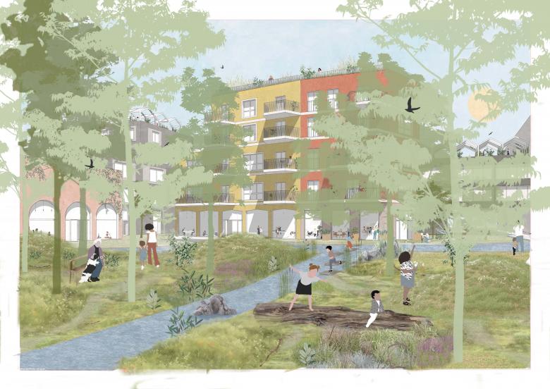 Berlin is growing. Against the backdrop of an ever-rising demand for affordable housing, the municipal housing developer HOWOGE recently launched an ideas competition for urban quarters on the periphery of Berlin. The goal was urban expansion concepts that engage, with no specificity of location, in considerations about mobility, identity and flexible building typologies combined with generous landscaping.