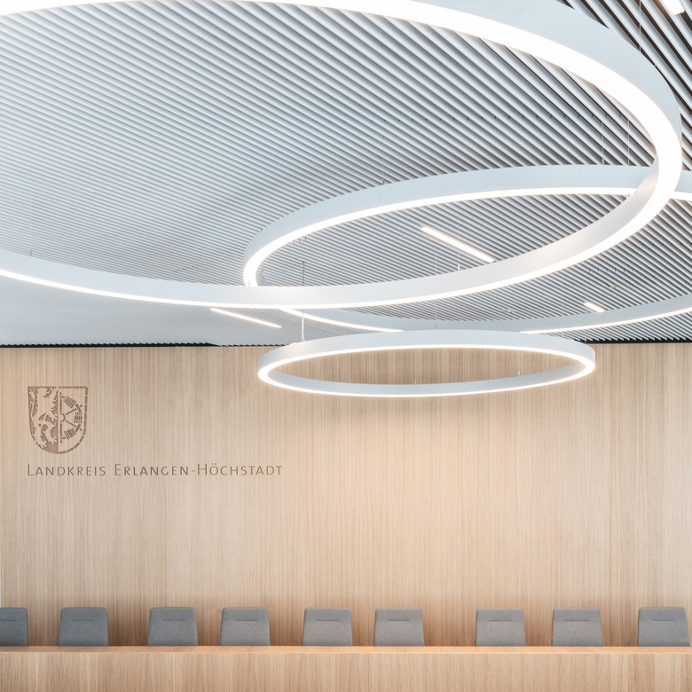 Im Stadtzentrum von Erlangen (D) setzt AllesWirdGut mit einem markanten Bau, einen das ganze Areal belebenden Akzent. Das neue Landratsamt bildet den städtebaulichen Dreh- und Angelpunkt der Quartiersentwicklung. Der kleeblattförmige Bau bildet allseitig Eingangssituationen aus, die in einer gemeinsamen Mitte münden. Die Erschließung reagiert auf regionale und überregionale Bezüge und verknüpft wichtige innerstädtische Verbindungen. Rund um das Gebäude entstehen Freiflächen, die den öffentlichen Raum qualitativ ergänzen und aufwerten.