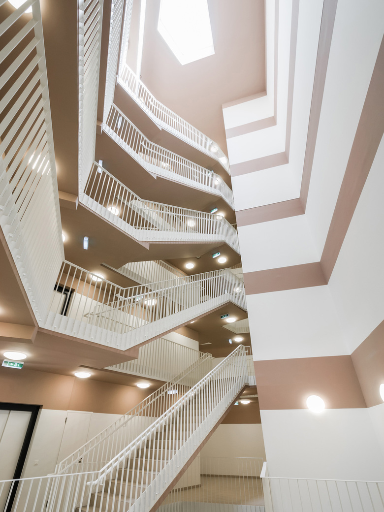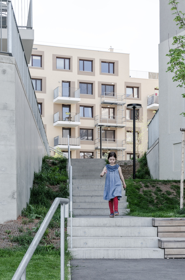 Die Wohntypen sind vielfältig adaptierbar, unterschiedlichen Familienkonstellationen und Lebensphasen wird damit Rechnung getragen. Im Inneren der Gebäude liegen breite, von Wiener Gründerzeit-Stiegenhäusern inspirierte Treppen. Über diese großzügigen Treppen sind rund 35 Wohnungen erreichbar. Diese Form der Infrastruktur hält Betriebskosten niedrig und sorgt für mehr Austausch unter den NutzerInnen. AllesWirdGut verfolgten hierbei das „Haus-des-Lebens“-Konzept, das eine Hausgemeinschaft aus rund 100 Personen zu etwa gleichen Teilen aus alten und jungen Menschen vorsieht. Kontakt und Synergien zwischen den BewohnerInnen sind erwünscht und wurden schon bei der Planung berücksichtigt und gefördert.