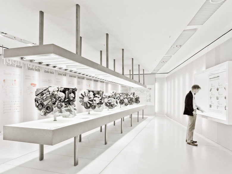 Im Rahmen einer Gesamtsanierung der Konzernzentrale wird das BMW Museum gestalterisch neu definiert. Die bisherige Museumsarchitektur der „Schüssel“ bleibt erhalten, benachbarte Gebäudeteile werden in die museale Nutzung integriert. Die Neukonzeption basiert auf Themenräumen, die durch eine Rampe, als Symbol für Mobilität und Bewegung, erschlossen werden. Sie verbindet die Ausstellungs- und Erlebnisorte. Die Idee der ursprünglichen Museumsarchitektur – Strassen und Plätze im umbauten Raum – findet ihre Fortsetzung in Form eines urbanen Raumerlebnisses aus Strassen und Häusern. Die mit medialen Mitteln dramatisierte Ausstellungsarchitektur bildet den eindrucksvollen Rahmen für die Exponate.