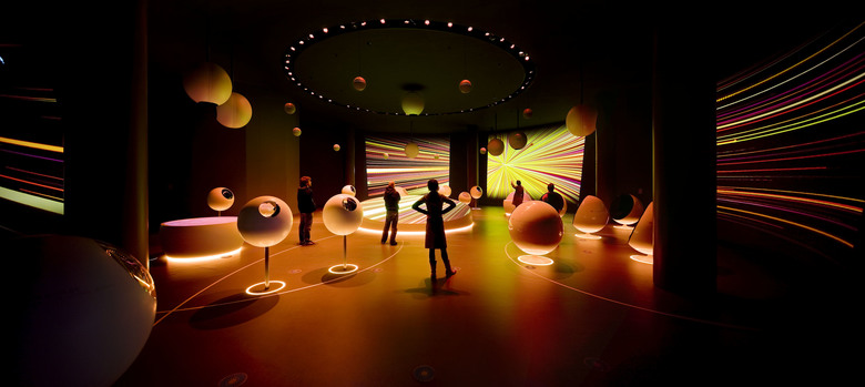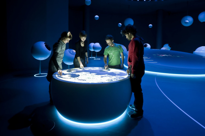 Der Besucher betritt ein "Universe of Particles". Kugelförmige Ausstellungseinheiten setzen sich zu einem Content-generierten Raumbild zusammen. Sie bieten eine Vielzahl von Informations- und Interaktionsmöglichkeiten, die zielgruppenspezifisch und thematisch aufbereitet sind. Der Höhepunkt der inszenierten Free-Flow-Ausstellung ist ein multimediales, dynamisches Raumerlebnis, das den Urknall als Phänomen erfahrbar macht. Der Ausstellungsraum wird selbst zum Exponat.