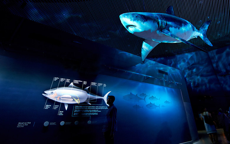 'Den Blå Planet' zählt zu den Hauptattraktionen Dänemarks. Das größte Aquarium Nordeuropas wurde mit grafischen Mitteln neu strukturiert, die Inhalte neu durchdacht. Eine feinsinnige Illustrationssprache durchzieht sämtliche Informationsebenen und lässt den Besucher in die faszinierenden Wasserwelten unseres blauen Planeten eintauchen. Tausende Fische und Meerestiere gibt es zu bestaunen: Ein fließendes Museumserlebnis.